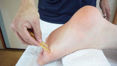 ・痛みや症状のある部位に、ごしんじょうを擦る押す施術になります。